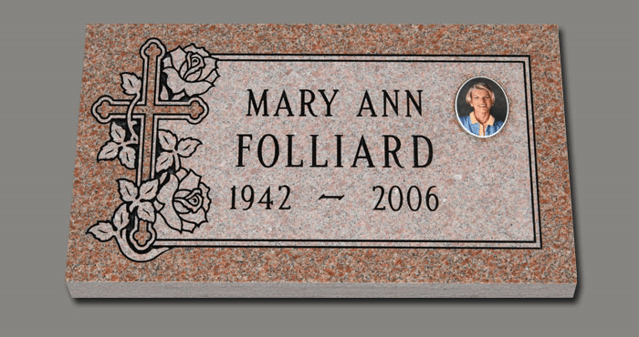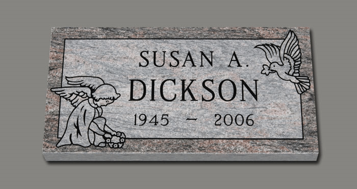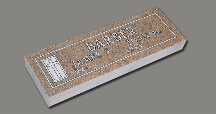 Flat Markers are a very popular choice for a memorial. They are also known as Flush or Grass Markers. With a variety of shapes, sizes and colors, there are many ways to customize these for your loved one. We will work with you to design it to your exact desire.