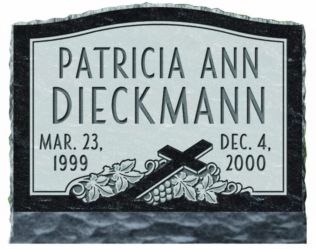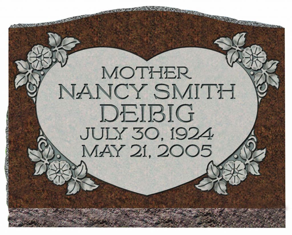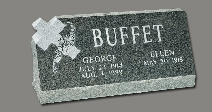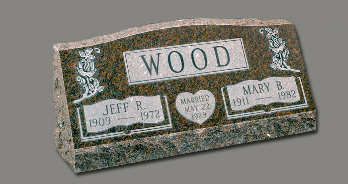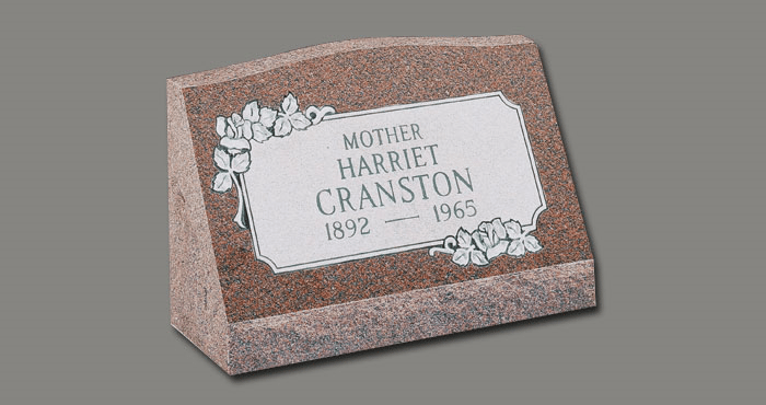 Slant Memorials are full customizable slanted face memorials that may or may not have a granite base beneath them. These can be engraved as singles or doubles and are available with a wide variety of different designs. The choices for granite are also endless.